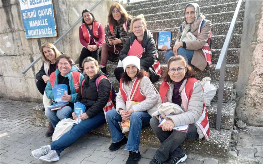 Hele kadın kolları zaten girilmedik yer bırakmamıştı. Bir de kadın kollarına ek olarak gönüllü kadınlarımız vardı. O kadar fedakarlık örnekleri görüyorduk ki... Çoluk çocuğunun yemeğini aşını bırakıp “Hadi verin bakalım bana da broşür bende geliyorum sizle” diyenler oluyordu. Mudanya Belediyesi personeli de daha sonrasında gelip bize katıldı.