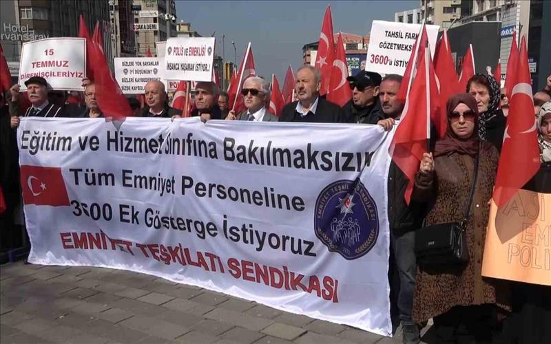 Bursa’da emekli polisler 3600 ek gösterge için 15 Temmuz Demokrasi Meydanı’nda buluştu.